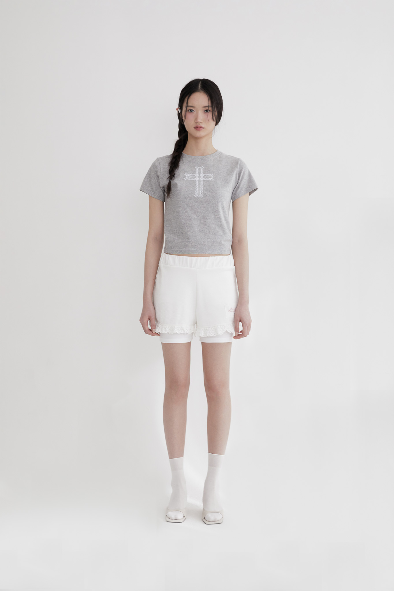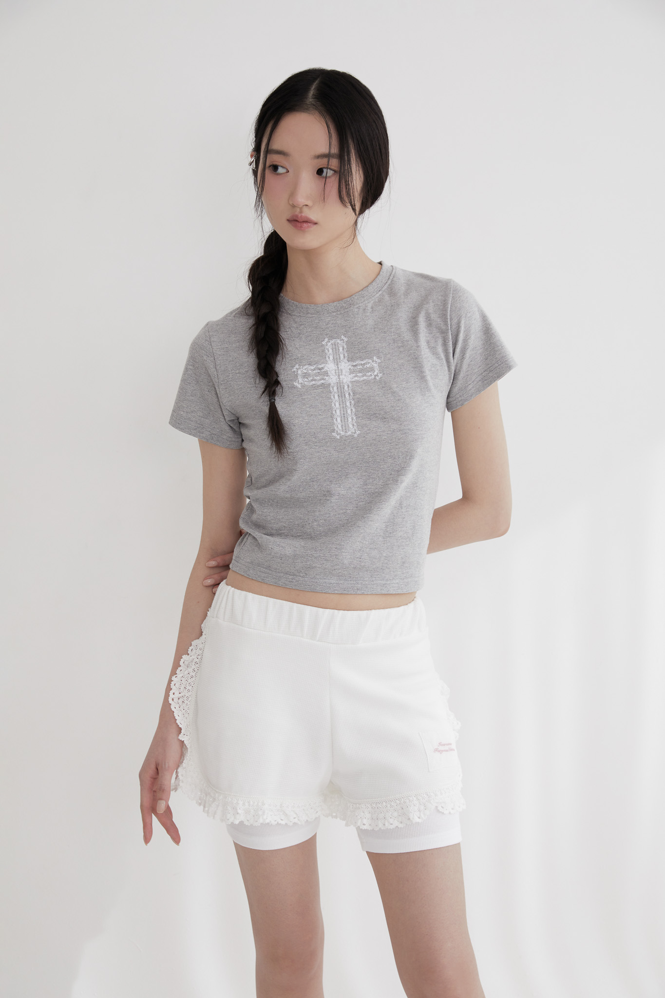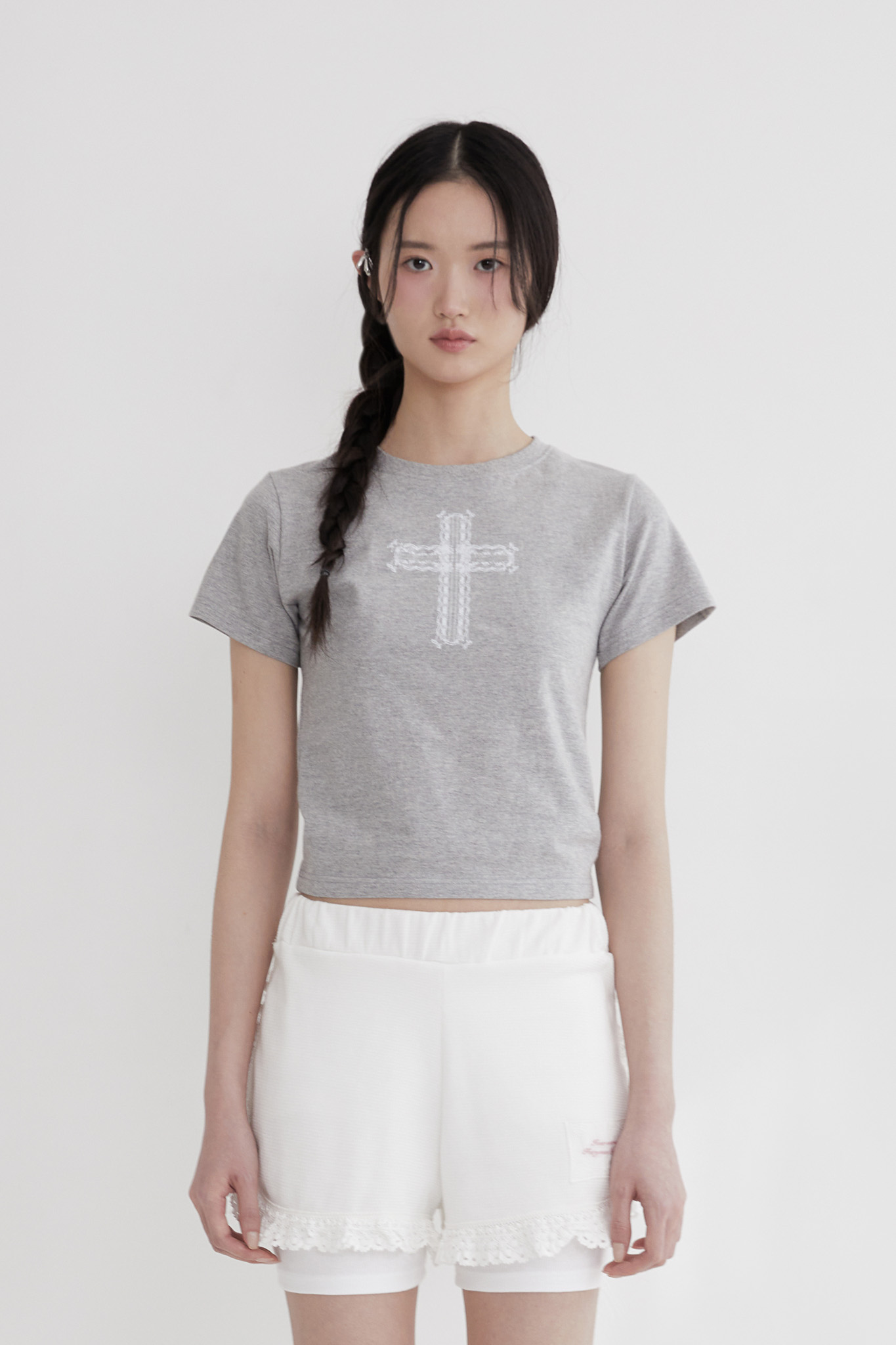 - 레이스 십자가 프린트