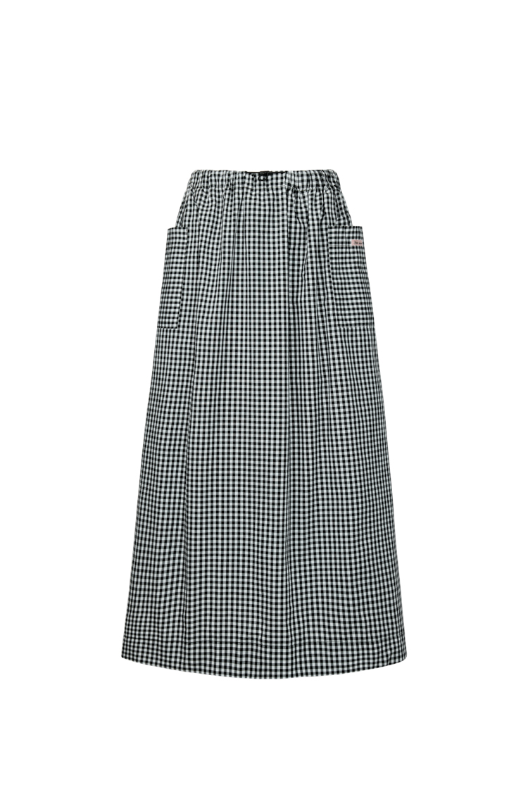 - 깅엄 체크 포켓 셔링 스커트(롱)