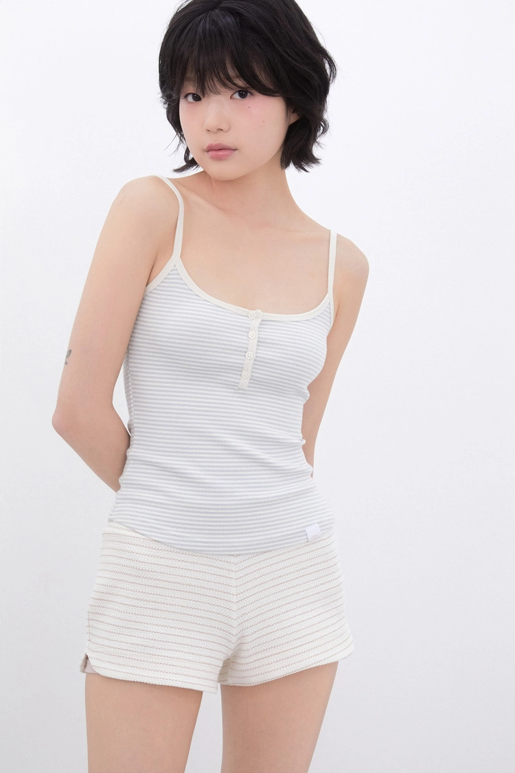 - 스트라이프 버튼 슬리브리스