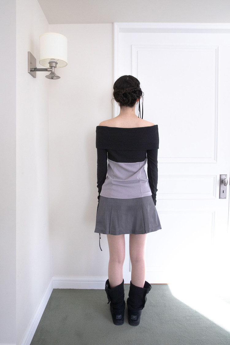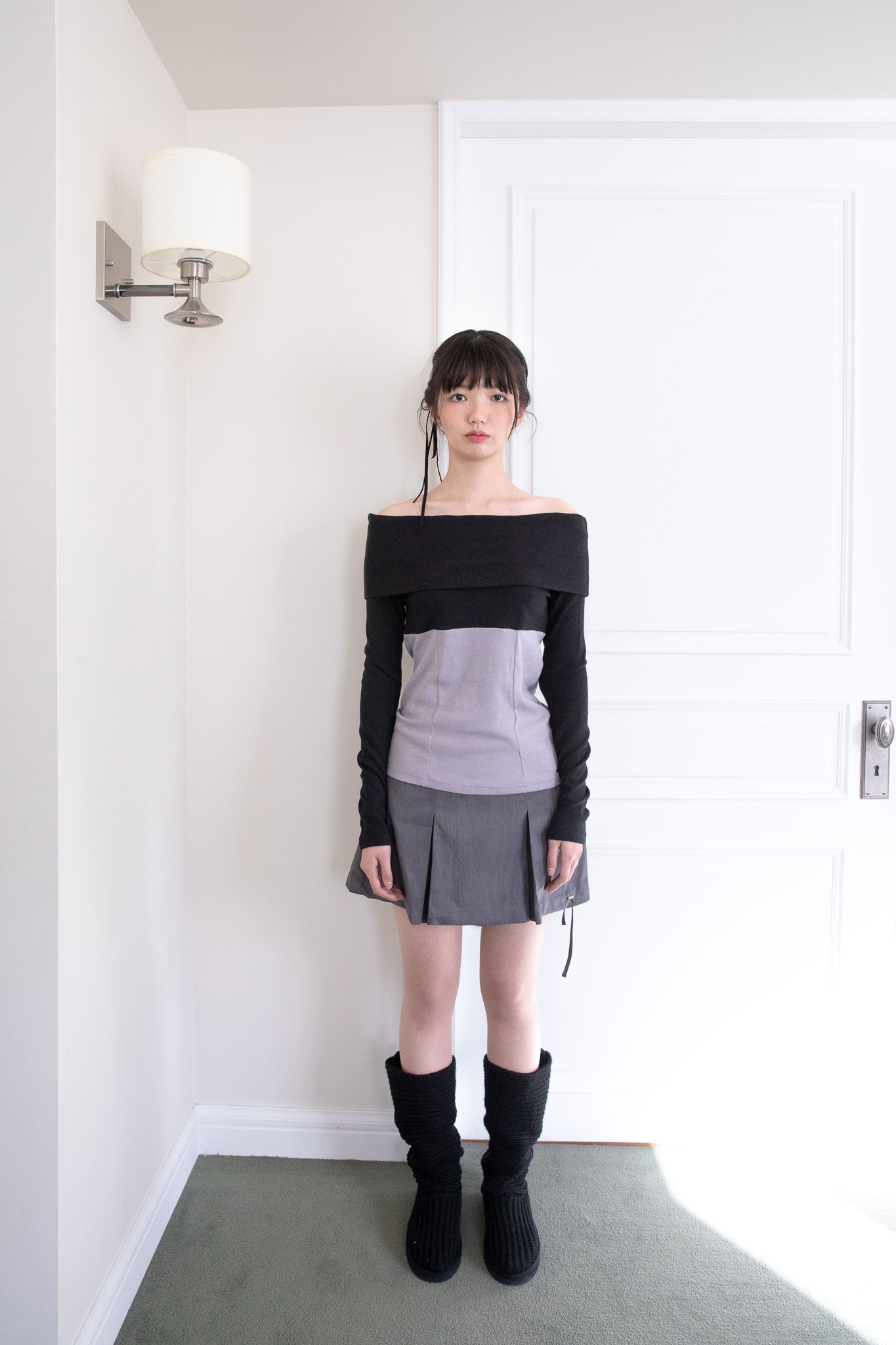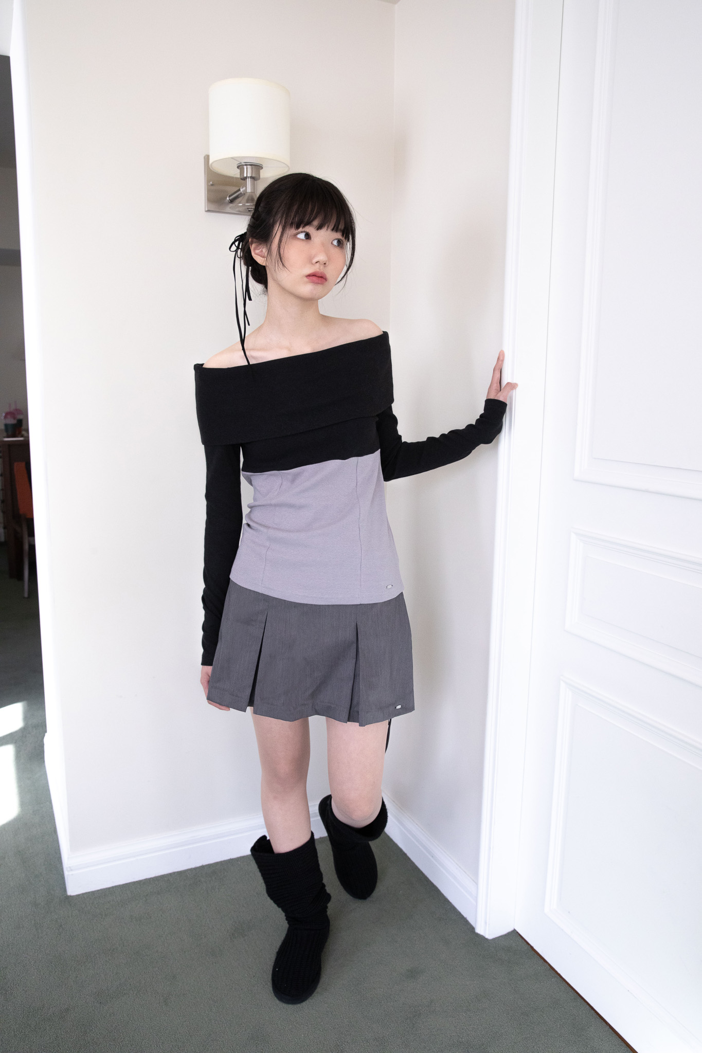 [REFURB]TWO-TONE OFF-SHOULDER KNIT [GREY]