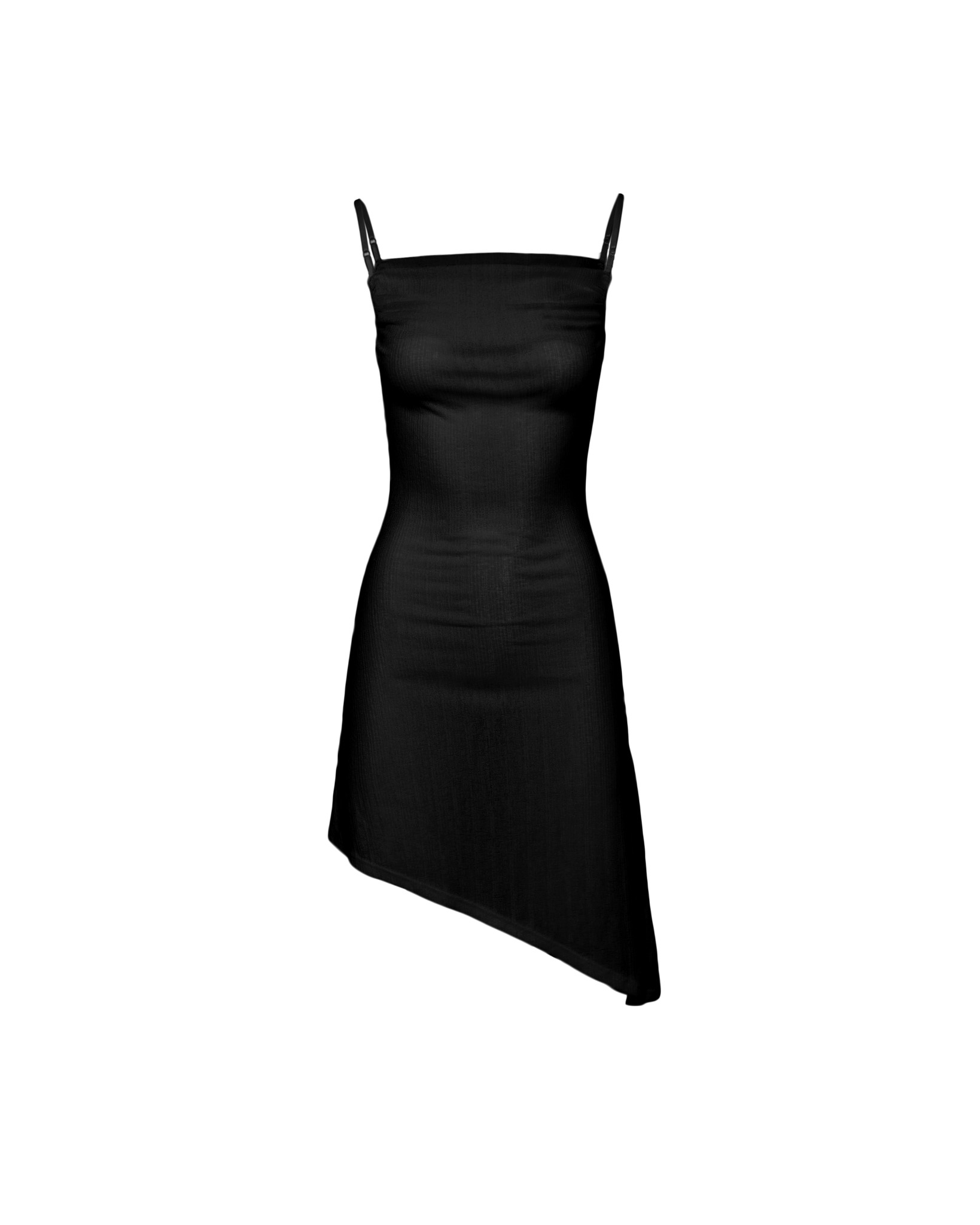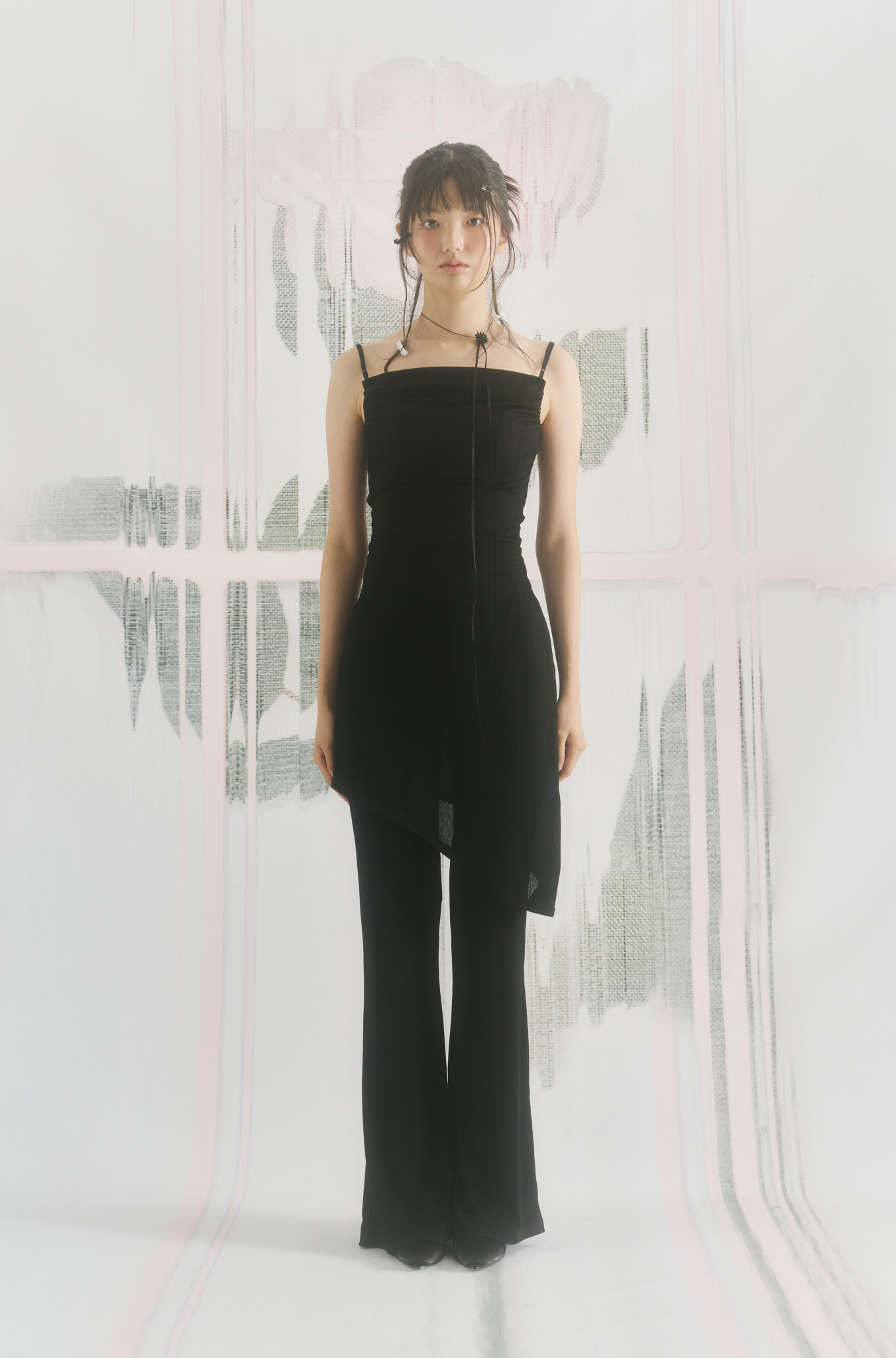 [REFURB]Unbalance Shirring Dress (BLACK)